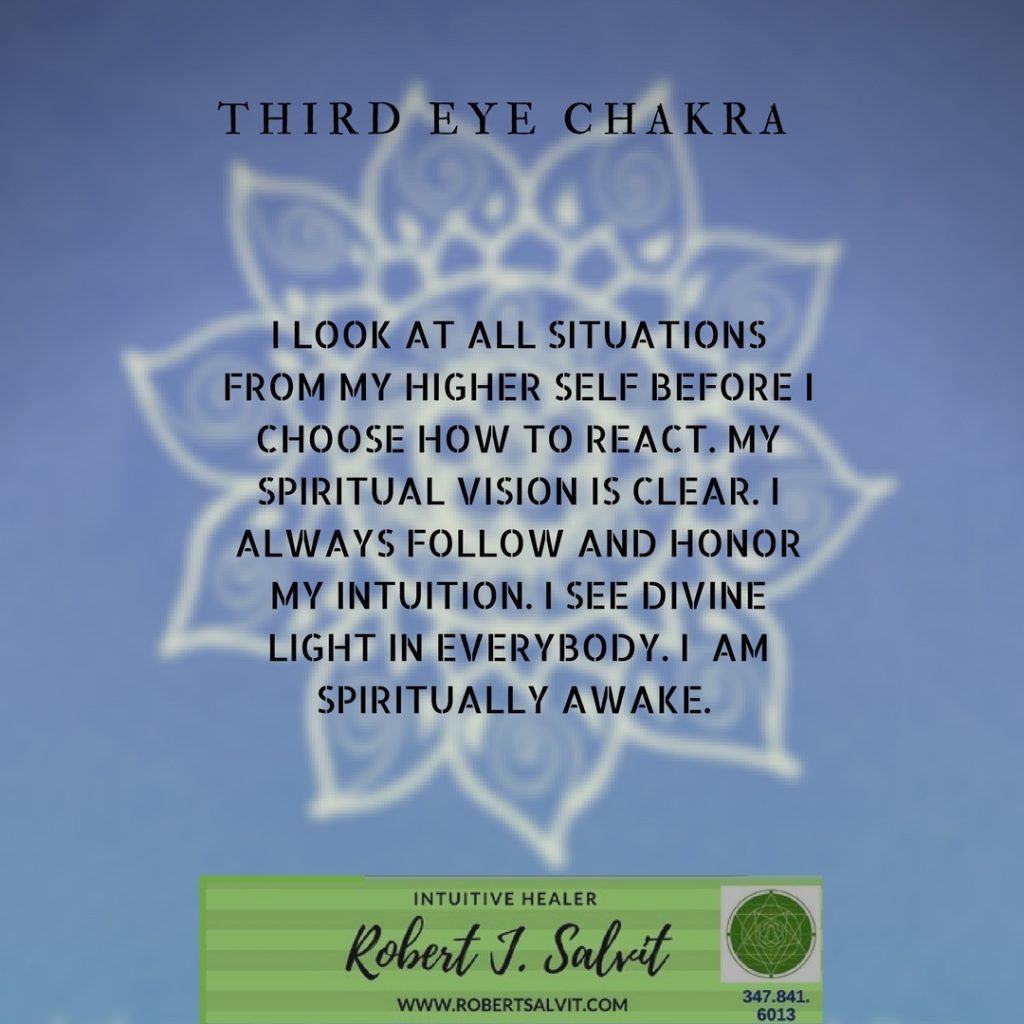 Third Eye Chakra affirmation and healer details.